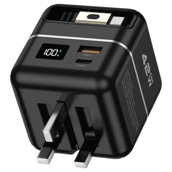Green Lion GaN Premium Series Charger 42W with 5000mAh Power Bank merges a charger with a portable power source. With an AC input of 100-240V, one can fast charge at its Type-C port of 42W (5V/3A, 9V/3A, 12V/3A, 15V/2.67A, 20V/2.1A). Meanwhile, its USB-A port does 18W while the Type-C cable does 20W. The 5000mAh power bank provides good charge-keeping ability for your gadgets while on the road. PD 42W fast charging can charge up to 50% within 30 minutes. It offers a 1-meter retractable Type-C cable for a neat and tangle-free experience. The outputs of a power bank Present Type-C and USB-A ports, offering compatibility for devices. The small and sweet charger is thus a must-have for anyone who needs to keep power either at home or outside.