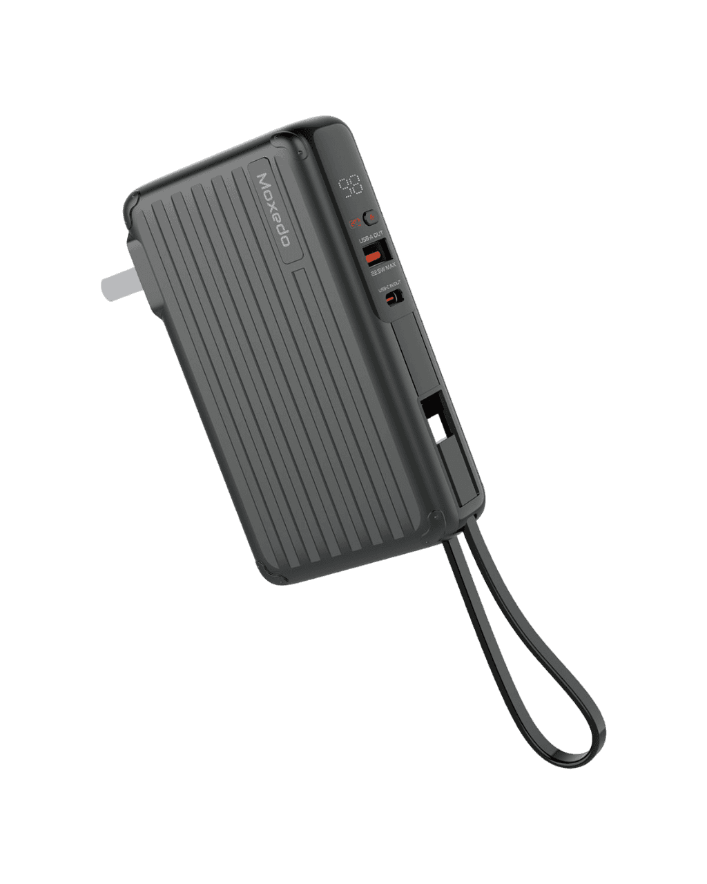 Moxedo Porta-Go 10,000 mAh 22.5W Power Bank with Built-in Foldable Interchangeable AC Plug, USB-C Cable and Included 2 Travel Adapters – Black